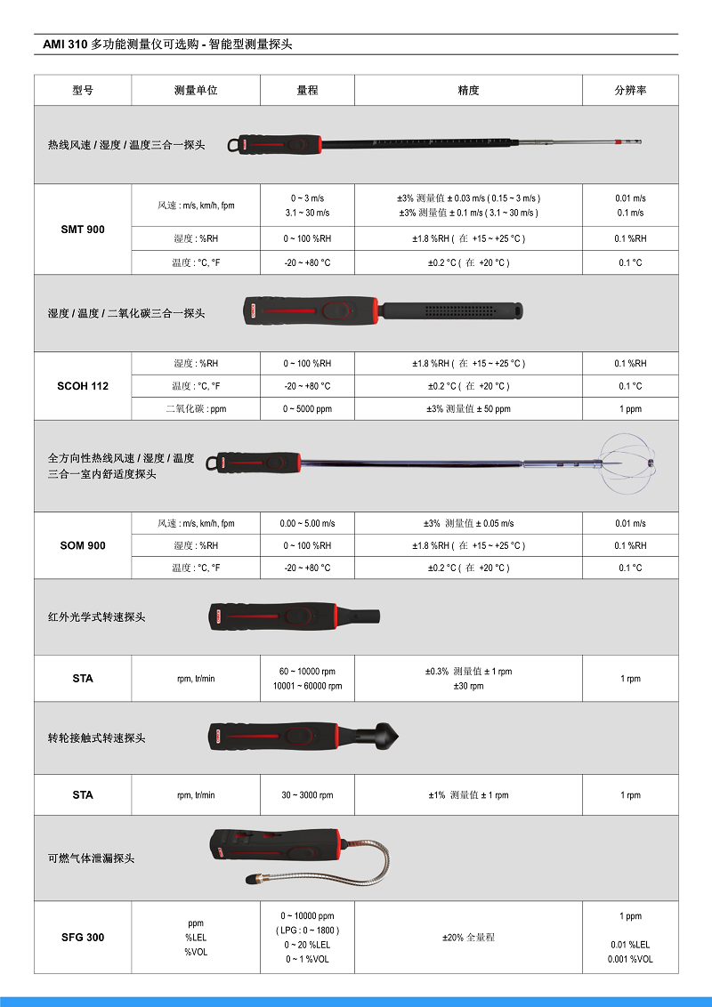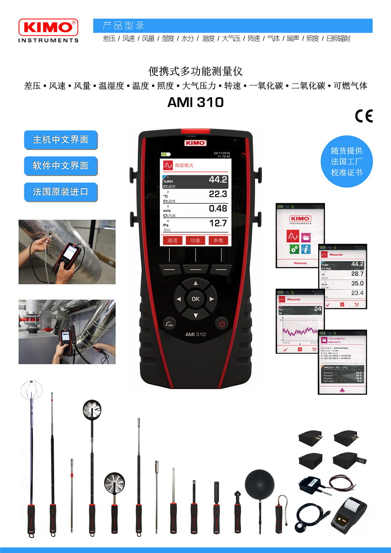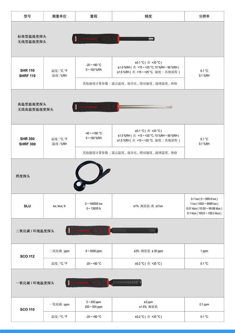 ? 便攜式測量儀可測量: 差壓, 風(fēng)速, 風(fēng)量, 溫濕度, 溫度, 照度, 大氣壓力, 轉(zhuǎn)速二氧化碳, 一氧化碳, 可燃?xì)怏w, 室內(nèi)舒適度, WBGT 指數(shù)