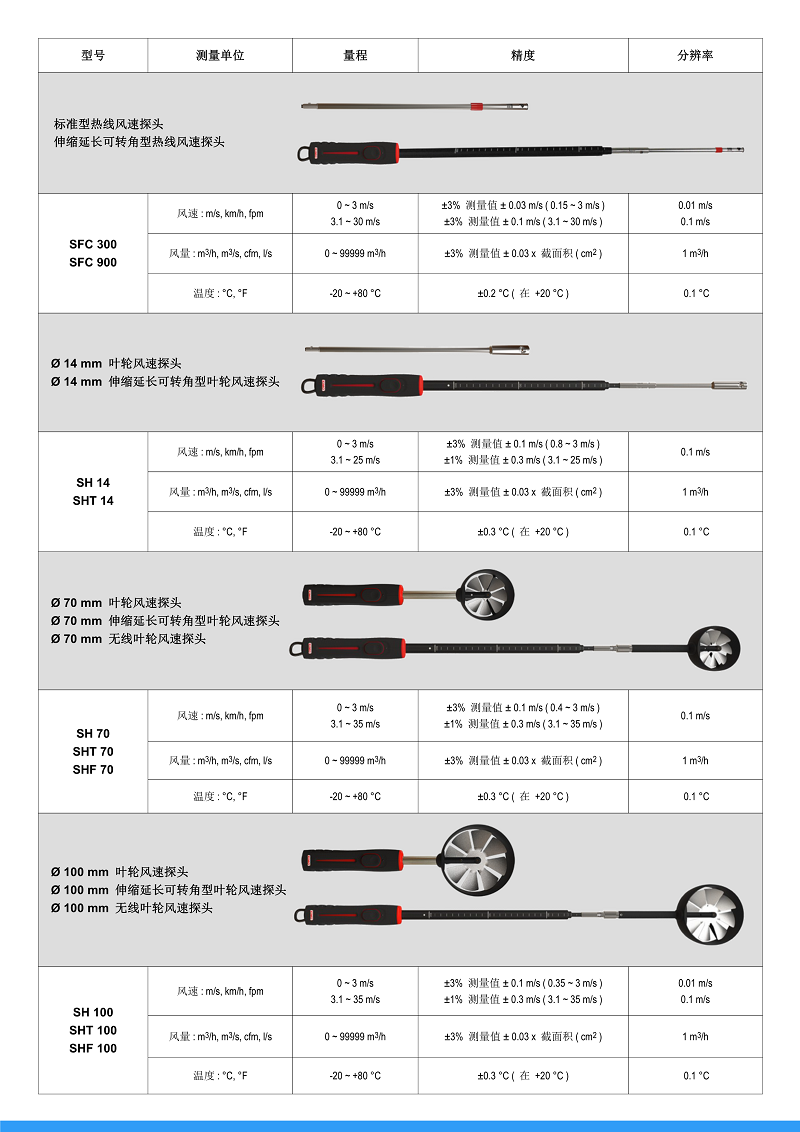 ? 選購搭配各式皮托管和翼型平均式測片可測量管道內(nèi)風(fēng)速