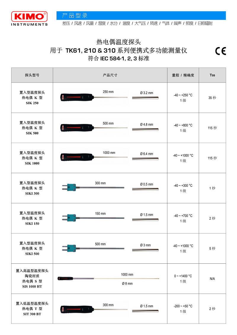 法國(guó)凱茂溫度探頭選型:K型熱電偶,鉑電阻,表面溫度探頭,置入溫度探頭等等