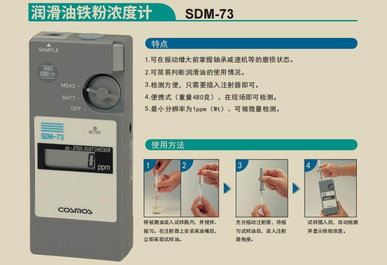 進(jìn)口品牌產(chǎn)品代理 > 日本新宇宙COMOS > SDM-72/73便攜式鐵粉濃度計(jì)
